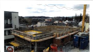 Umbau und Erweiterung des ehemaligen FW-Haues zur VolksmusikakademieAus der Vision von einer Volksmusikakademie in Bayern wurde jetzt Realität. Zu Akademieräumen umgebaut wurde der historische Langstadl, ein ortsprägendes großes Gebäude von 1840 nahe dem Freyunger Stadtzentrum, die die örtliche Lang Brauerei früher als Pferdestall und Lagerraum genutzt hatte. Unser Bauauftrag bestand darin, das bestehende Feuerwehrhaus zu einem Bettenhaus mit 12 Zimmern umzubauen, welches Platz für 48 Übernachtungsgäste der Volksmusikakademie bietet. Hierzu wurde das Erdgeschoss des Feuerwehrhauses komplett abgetragen und durch einen etwa 12 x 15 m großen, zweigeschossigen Ziegelmassivbau ersetzt. Das hervorspringende Treppenhaus wurde in Sichtbetonqualität erstellt. Um den Anforderungen der neuen Nutzung gerecht zu werden, musste die darunterliegende Garage statisch sowie energetisch ertüchtigt werden. Hierzu wurden neue Fundamentbalken betoniert und Mauerpfeiler zur Unterstützung der Decke eingezogen. Die Decke wurde mit Steinwollplatten gedämmt. |